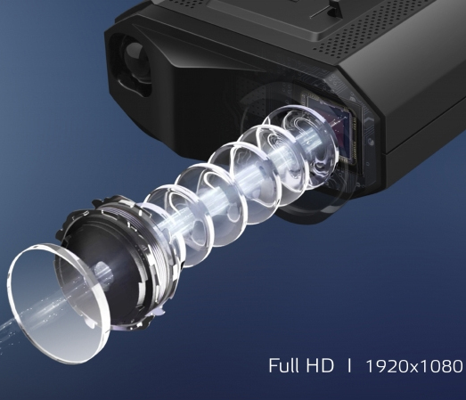 The hybrid recordes in Full HD resolution with support for bit rates up to 20 Mbps. Multi-lens glass optics and a Sony sensor provide high quality video in any lights. A wide viewing angle of 135 degrees allows you to cover five roads lanes and the side of the road