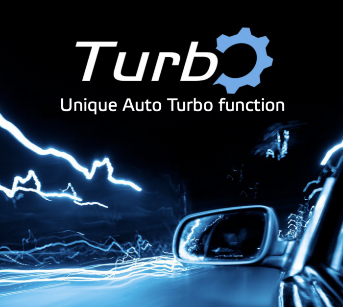 Due to the widespread use of low-power police radars a special enlarged horn is installed in the device to ensure reliable reception of signals against “elusive” police radars. The special “Turbo” mode is especially effective against such radars. A special speed setting has been created for it – “Auto turbo”, which automatically turns on the “Turbo” mode when the set speed is reached